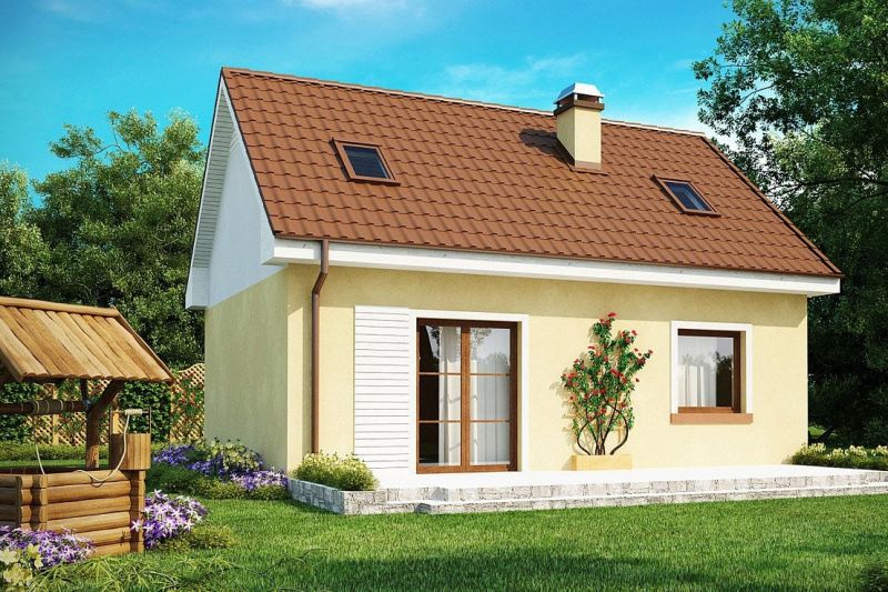 Каменный одноэтажный коттедж с мансардой